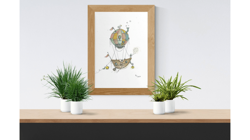 Je ontvangt niet alleen een unieke print van een aquarelillustratie, maar ook een kort, sprankelend verhaaltje dat erbij hoort. Zo krijgt je muur niet zomaar een kunstwerk, maar een écht conversation piece – iets waar iedereen even bij blijft stilstaan, met een glimlach of een vleugje verwondering.